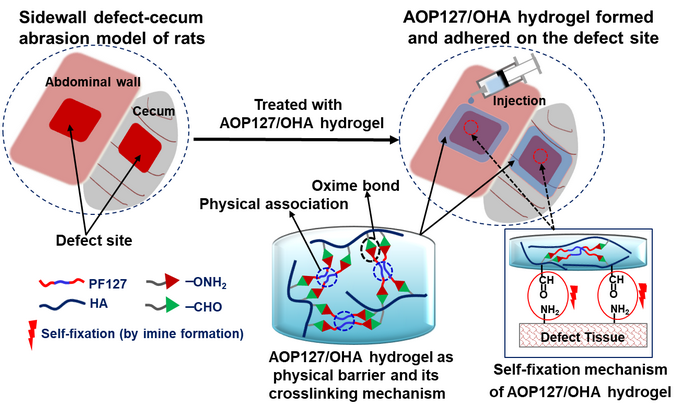 图3 具有组织黏附性的双交联水凝胶,可作为物理屏障起到防腹腔组织粘连作用。