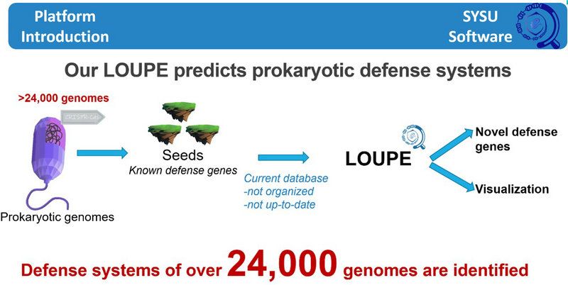 best365中国官方网站软件队(SYSU-Software)成员包括来自生命科学学院的李锶铎、王元瑾、陈佳芃、程一诺、冯瑜辉、李慧彬、李凯、童馨洁、伍周颖、张蔼铭,计算机学院的黄靖云、王童、许鸿鑫、许遵楠、杨天行、郑中淳,数学学院的龚立言,传播与设计学院的简子乔,生态学院的徐微,环境科学与工程学院的李心妍、邱文君等,不同学科背景的同学聚在一起激起创新思维的火花。在生命科学学院杨建华教授等老师的指导下,团队阅读大量文献,走访不同实验室,抓住寻找原核生物新型的抗病毒基因的学术前沿话题,充分运用合成生物学的思维方式和研究手段,结合大数据、人工智能算法和机器学习等开发出原核生物抗性系统搜索及预测平台“LOUPE”(http://sysu-software.com),主要目标是从巨大的微生物基因组中发现新的防御系统及防御基因。应用“LOUPE”软件于大规模的微生物基因组数据中,挖掘出大批新的防御基因,最后利用湿实验初步验证了这些基因的潜在防御功能。该项目为研究者寻找潜在基因编辑工具和理解噬菌体-宿主相互竞争机制提供了新的方法。