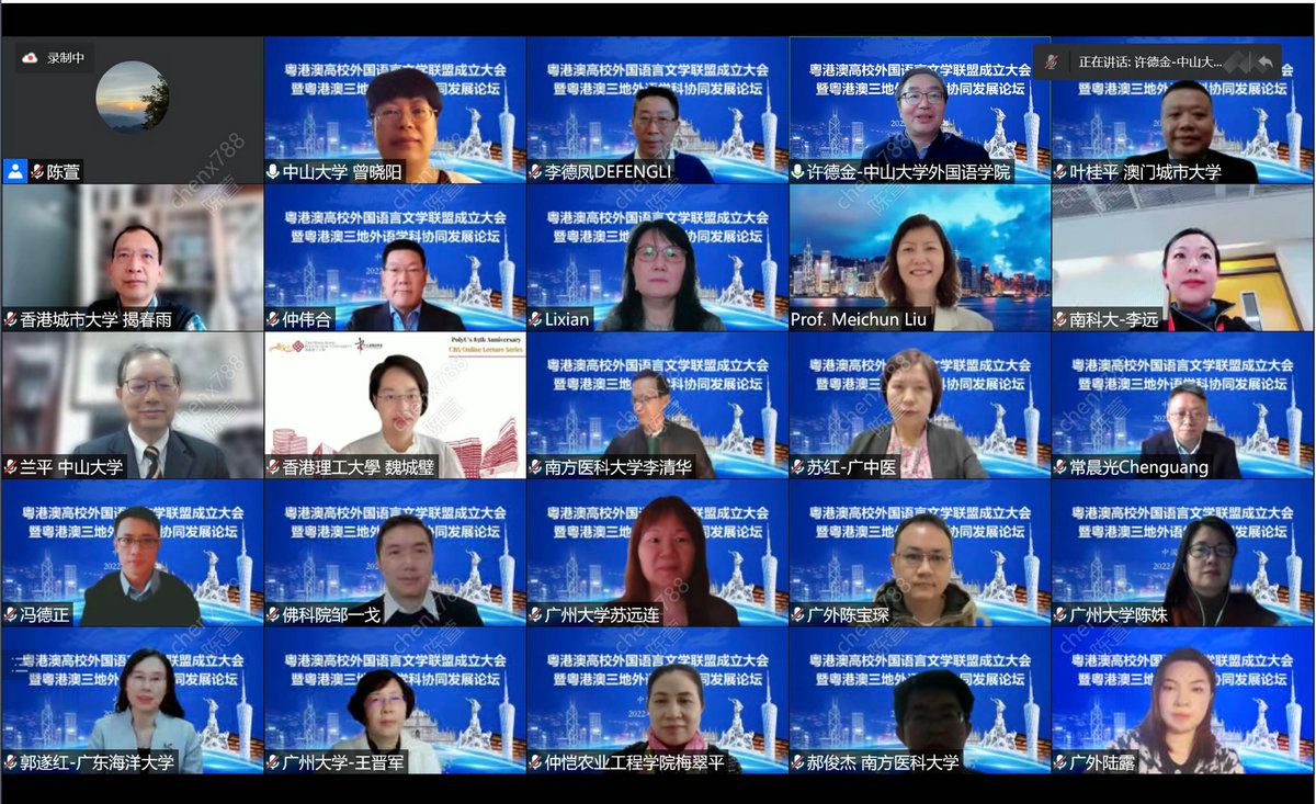中大新闻网广州12月16日电(通讯员陈发美)12月10日,粤港澳高校外国语言文学联盟成立大会暨粤港澳三地高校外语学科协同发展论坛成功举办。best365中国官方网站副校长兰平教授、澳门城市大学副校长叶桂平教授、粤港澳三地20多所成员院校的院长、教授、职能部门负责人近60人线上参会。会议由best365中国官方网站外国语学院主办。开幕式由best365中国官方网站外国语学院曾晓阳教授主持。