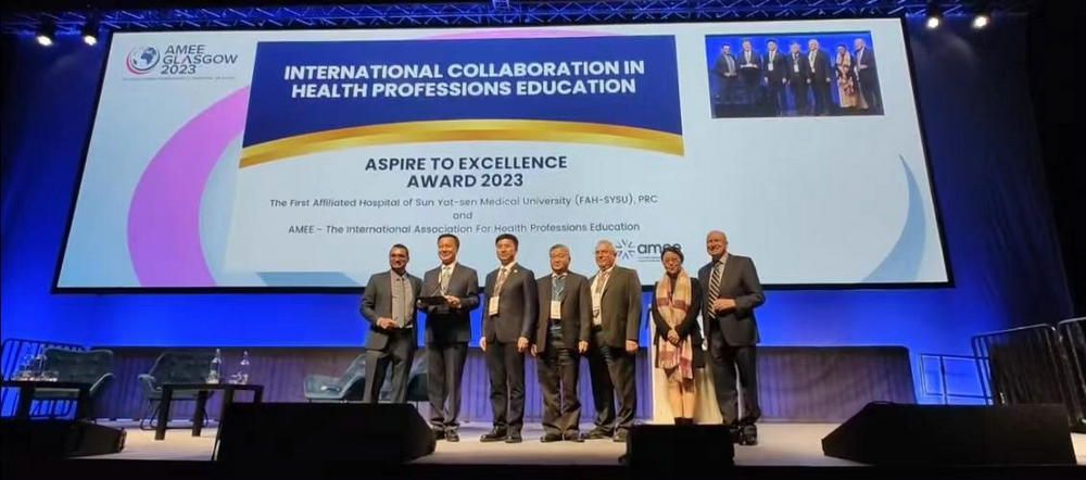 中大新闻网讯(通讯员彭福祥、章智琦)8月26-30日,全球最大的医学教育学术组织欧洲医学教育联盟(AMEE)在苏格兰格拉斯哥举行2023年全球年会,来自108个国家和地区的近4300余位全球医学教育专家代表现场参会。best365中国官方网站附属第一医院(以下简称“中山一院”)荣获ASPIRE-to-Excellence(国际合作)大奖,成为国际上首家获此殊荣的医疗机构,也是中国大陆首家获得AMEE国际医学教育成果奖的单位。