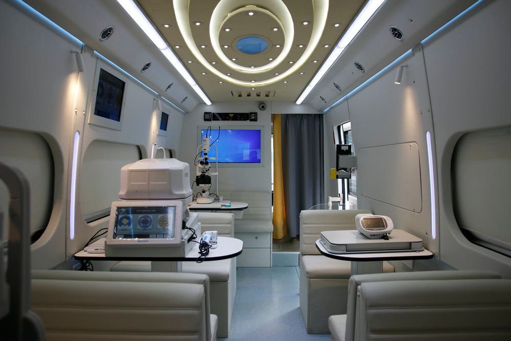 5G智能眼科巡诊车搭载了 “一网一车一平台两智能”的新型智慧医疗技术:即巡诊车以安全高速的 5G 医疗专网为基础,以搭载眼专科检测设备的医疗车为载体,以覆盖预防-筛诊-干预-追踪等全方位式眼科医疗服务的一体化应用平台为抓手,以人工智能辅助筛诊和区块链数据管理系统为技术保障,以科技创新赋能医疗服务模式的革新发展,推动优质眼科医疗资源快速扩容下沉,助力我国新型智慧医疗服务在推动全民眼健康的目标上取得新突破。