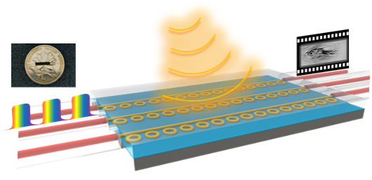 电子与信息工程学院(微电子学院)的李朝晖教授、沈乐成教授团队发现一种声学敏感的新型材料体系,并利用该材料制备出包含大规模光学微环阵列的超声感知光子芯片,实现了生物活体的高通量成像,这一成果是光学超声传感领域的重要进展和学术前沿。该光子芯片在超声探测灵敏度、带宽等性能指标上处于国际领先水平,有望替代压电式超声传感器阵列,为医学超声影像和相关领域的应用提供了创新解决方案。