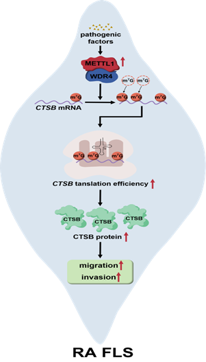 许韩师肖游君团队揭示METTL1介导的m7G甲基化促进类风湿关节炎滑膜侵袭的新机制
