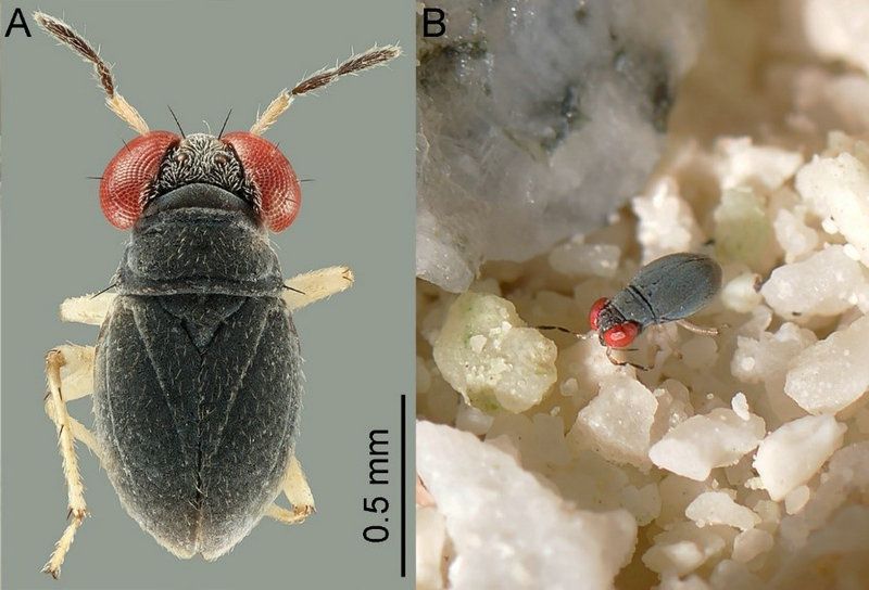 西沙涯蝽的体长只有1.24–1.38毫米,生活在海岸区域,躲藏在珊瑚石或沙滩的细小孔洞中,靠捕食小型节肢动物为生。为适应潮间带的生活,它们前翅完全革质化、为鞘翅,后翅缺失,在身体结构方面极具特色(图1)。该科此前已知2属5种,分布于印度洋和太平洋岛屿和大陆海岸;其中第一个被发现的物种由匈牙利昆虫学家Géza Horváth于1915年发表。