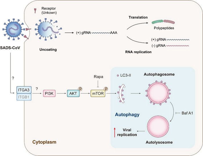 细胞自噬调控SADS-CoV复制模式图