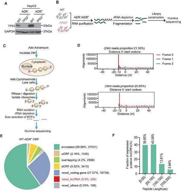 图1:联合多组学技术鉴定p53调控且具有编码潜能的lncRNA