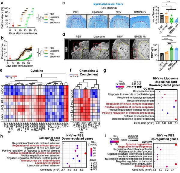 图1:NNV改善EAE动物模型(a-d),减轻神经炎症(e-i)