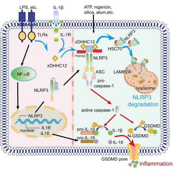 蛋白棕榈酰化介导自噬和NLRP3炎症小体互作调控炎症及其相关疾病的新机制