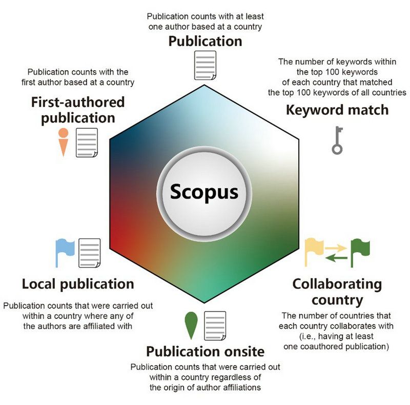 针对该问题,best365中国官方网站生命科学学院范朋飞教授团队进行了大规模的文献检索。在Scopus数据库中,检索了全球193个国家于2001-2020年间发表于229个保护相关杂志上的177627篇文章,构建了6个保护研究能力指数(图1),包括文章总数、一作文章数、本国研究数(本国科学家参与的在本国开展的研究数)、本地研究数(在本国开展的研究数)、合作国家数,和关键词匹配率。在此基础上,评估了各国保护研究能力的现状和变化趋势,以自然指数(Nature Index)和IUCN物种存活委员会专家组的主席数量分别对保护研究能力指数进行了验证,并使用GAMLSS模型评估了各指数对于国家生物多样性保护的影响。