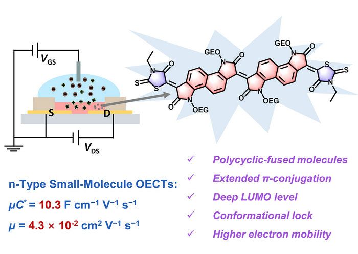 应用于高性能的n型有机电化学晶体管的新型刚性稠环小分子半导体
