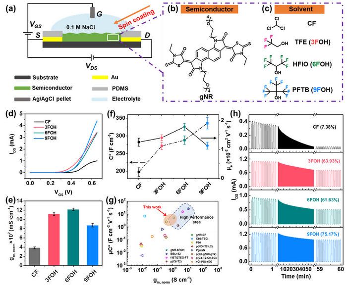 新型绿色溶剂用于提高n型有机电化学晶体管性能及稳定性