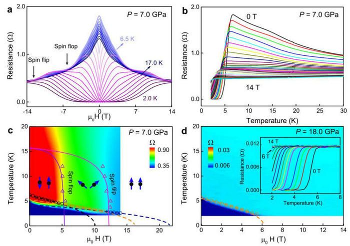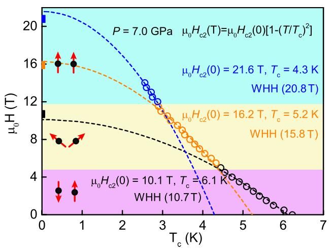 图2. EuTe2在7.0 GPa压力下不同磁性状态对应的超导及临界磁场