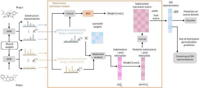 中大新闻网讯(通讯员唐振超)一种药物不能满足多种复杂疾病的治疗,很多时候需要两种或多种药物共同治疗多种疾病。但是当人们服用一种以上的药物时,药物之间的相互作用可能会对人体造成不良影响,这种现象称为药物相互作用(DDI)现象,因此在服用多种药物之前确认DDI至关重要。传统上,DDI的检测是通过广泛的生物学或药理学分析进行的。然而,这个过程是费时费力的,况且药厂也没有这么多人力物力来验证所有上万种药物之间的交互作用,因此深度学习方法可以作为一种低成本但有效的替代方法,通过识别已知DDI的模式来预测潜在的DDI。药物相互作用在体内会引发意想不到的药理作用,并且通常具有未知的因果机制。虽然现在已经开发了深度学习方法以更好地理解DDI,然而精确的预测DDI仍然是一个挑战。具备可泛化的DDI预测比源域预测更接近现实场景。
