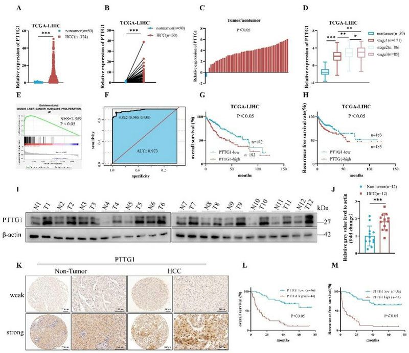 肝癌组织重新调整其代谢过程,满足并维持肝癌细胞增殖的能量和代谢需求。ASNS催化天冬氨酸转化为天冬酰胺,满足肿瘤细胞对天冬酰胺的需求。PTTG1是一种垂体衍生的转化基因,被认为对维持正常细胞周期调控有着重要作用,在肿瘤中的研究证实是一种参与增殖和代谢的原癌基因。团队前期研究通过转录组学筛选出PTTG1是肝癌组织中上调最明显的基因之一,但具体的作用及机制尚不明确。因此,探究PTTG1在肝癌发生发展过程中的具体作用及调控机制,对探索肝癌治疗的新靶点至关重要。