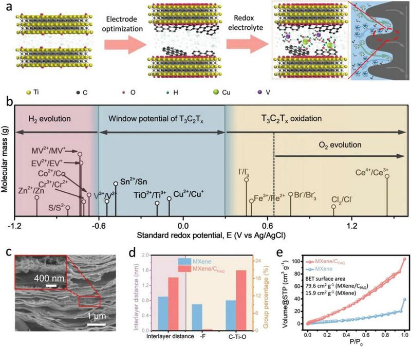 图2. 氧化还原添加剂和Ti3C2Tx MXene相互作用机理