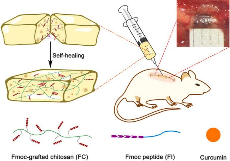 图3:FC/FI可注射自修复水凝胶缓释姜黄素修复脊髓损伤示意图