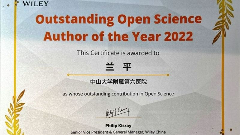 附属第六医院兰平团队、王辉团队获“WILEY威立中国开放科学2022年度作者”奖
