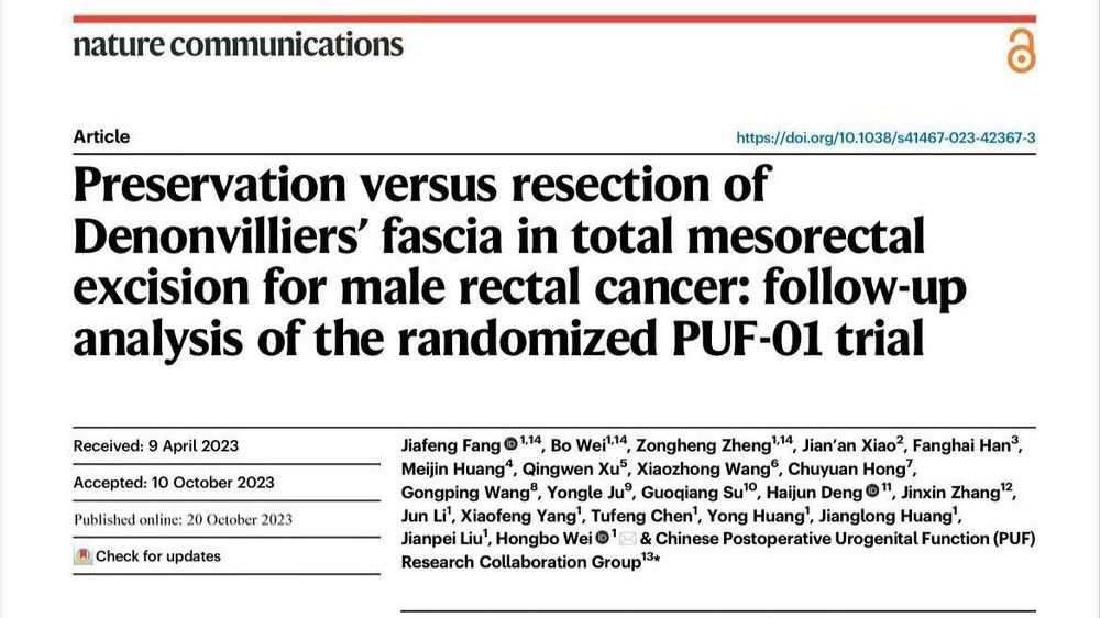 中大团队原创性直肠癌保功能手术iTME临床研究成果正式发表