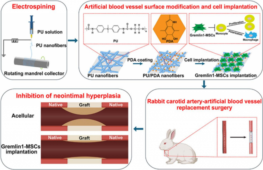 best365中国官方网站向秋玲刘瑞明项鹏合作揭示Gremlin1修饰间充质干细胞提高小口径静电纺丝聚氨酯人工血管移植通畅率