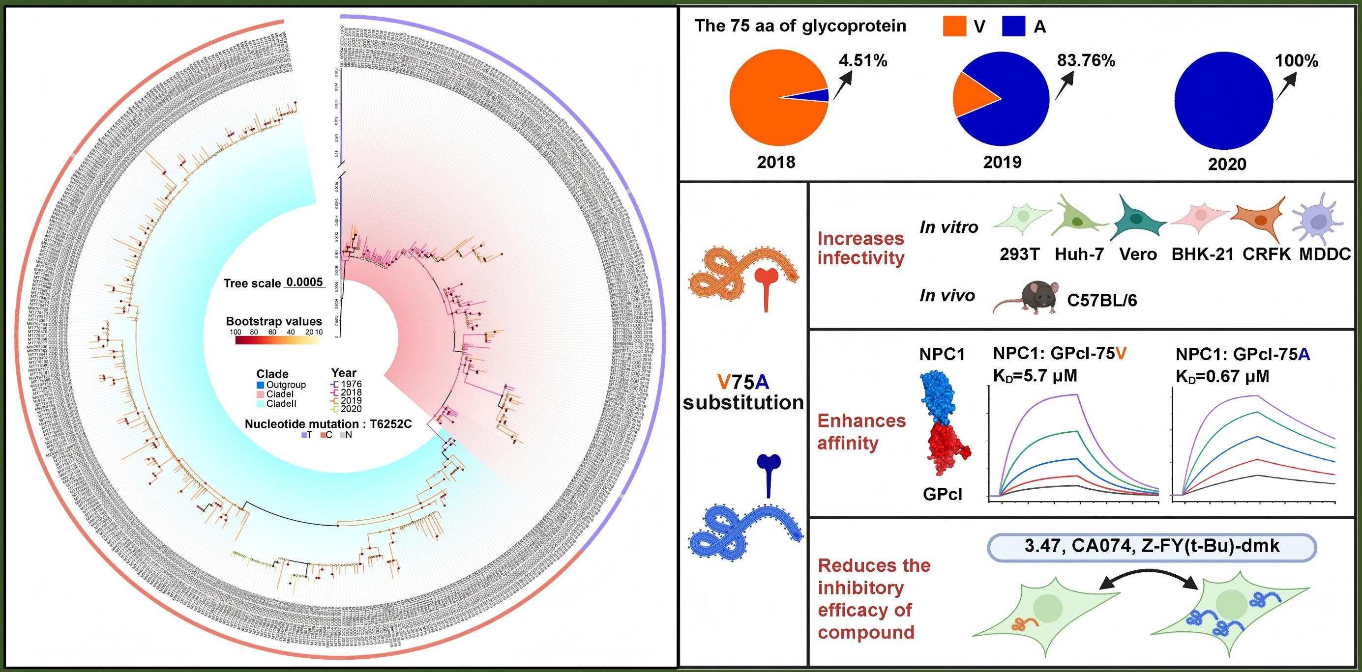 best365中国官方网站教授钱军团队与合作者通过系统性基因组流行病学分析,揭示了2018年至2020年埃博拉疫情中出现的优势突变GP-V75A,并阐明了该突变增强病毒感染性的分子机制。1月23日,相关研究成果在线发表于《细胞》。钱军团队联合广州医科大学附属市八医院研究员刘林娜团队、吉林大学第一医院教授刘全团队、best365中国官方网站教授杨建荣团队,首先对480条埃博拉病毒全基因组进行分析,发现携带糖蛋白GP-V75A突变的毒株在疫情早期出现,之后迅速...