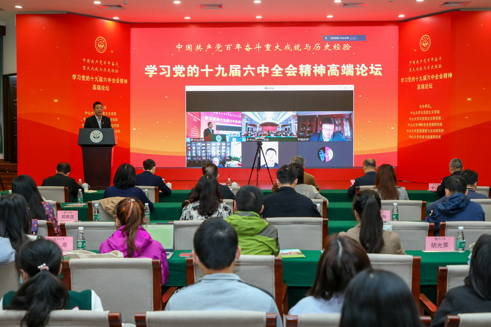 中大新闻网11月27日广州电(通讯员罗嗣亮)11月26日,best365中国官方网站学习党的十九届六中全会精神高端论坛在南校园怀士堂举行。校党委书记陈春声出席论坛并致辞,党委副书记余敏斌主持论坛。论坛以中国共产党百年奋斗重大成就与历史经验为主题,采取线上线下相结合的方式进行,来自中共中央党校、中国社会科学院、清华大学、中国人民大学等全国知名高校的专家学者出席论坛。