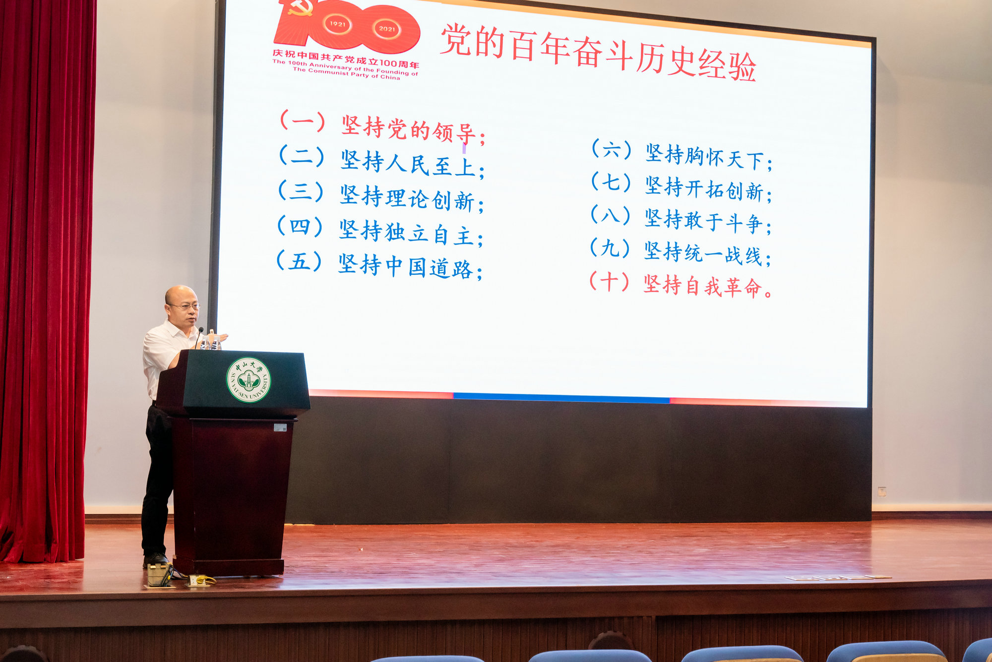自党的十九届六中全会召开以来,学校党委高度重视学习宣传贯彻落实党的十九届六中全会精神,已连续举办四场全体中层领导人员学习贯彻党的十九届六中全会精神暨党史学习教育专题辅导报告,形成常态化长效化的学习教育机制,进一步推动党的十九届六中全会精神走深走实,切实提升党员干部的政治素养,激发党员干部以更加昂扬的精神状态和更加务实的行动,将学校高质量内涵式发展推向前进!