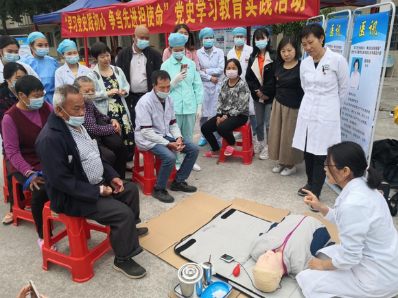 4月10日,学院党委组织师生党员到三水区南山镇为基层群众开展义诊和急救科普宣传(来源:护理学院)