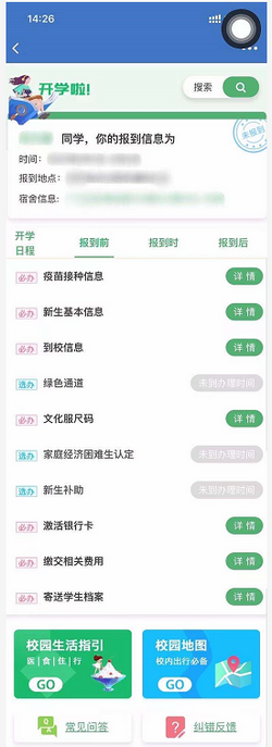 高效、便捷、用心的安排得到了学生的认可,生物医学工程专业的顾庭苇对数字化迎新工作也是称赞有加,“中大将智能化服务融入迎新的点滴之举带给了我极大便利。作为21级新生,感触最深的便是企业微信中面面俱到、方便快捷的迎新服务,它不仅以时间为依据划分各阶段应做事宜,而且使用打卡方式将待办事项一一列举,时间与事件条条对应,清晰明了。”