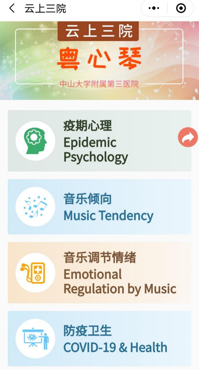 该程序使用便利,可在微信搜索小程序“云上三院”,先进行情绪自测,再根据结果选择针对性音乐进行情绪调节。