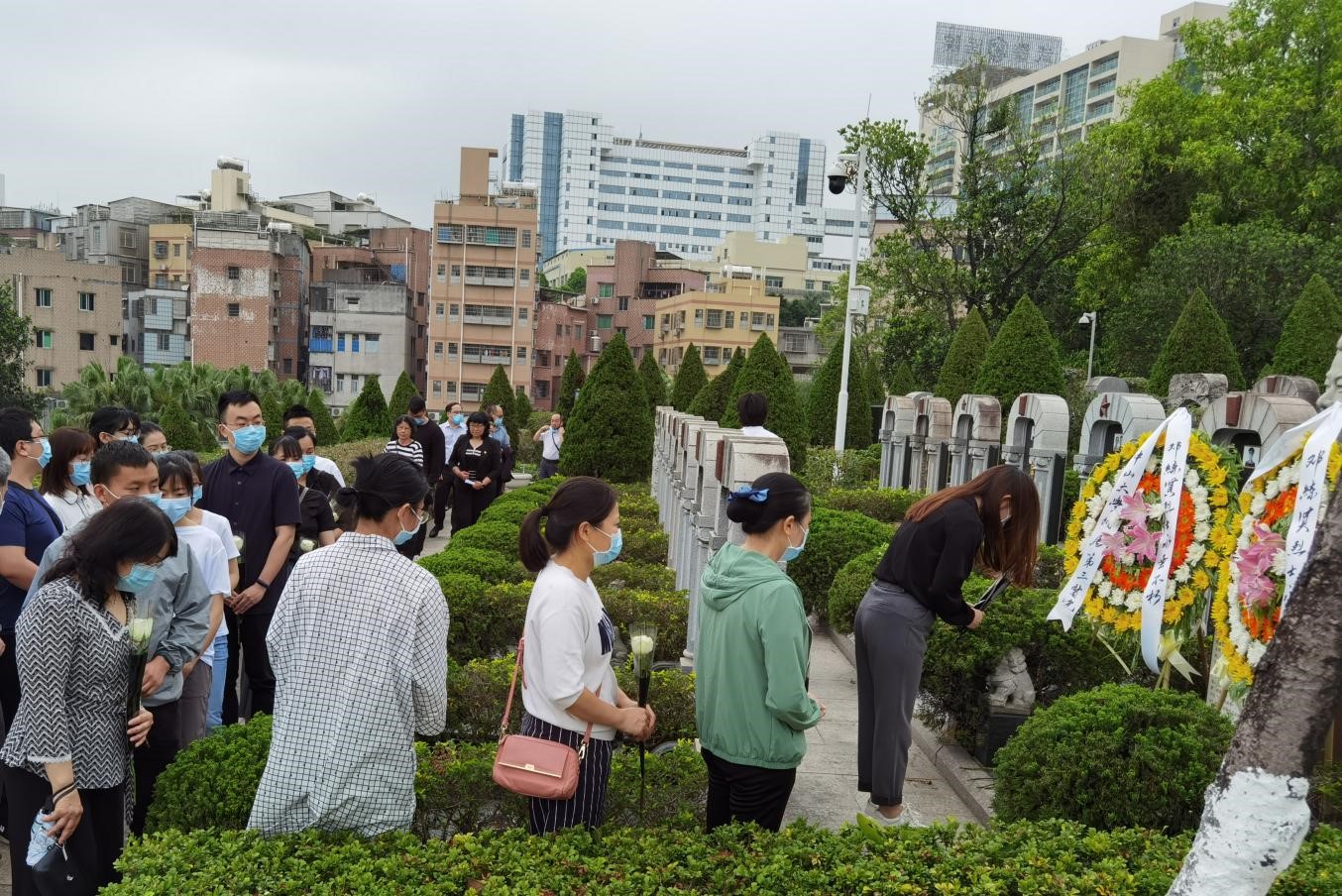 参加扫墓仪式的党员职工代表依次瞻仰烈士(来源:附属第三医院)