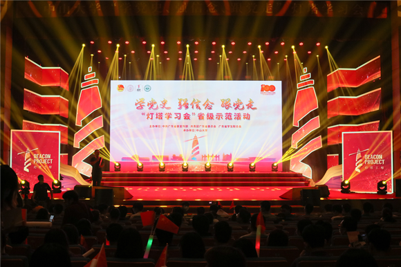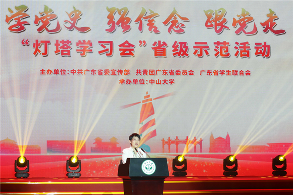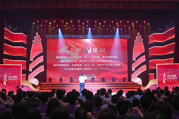 中大新闻网讯(通讯员周晶 赵丹琳 苏振东)由中共广东省委宣传部、共青团广东省委员会、广东省学生联合会主办,best365中国官方网站承办的“学党史、强信念、跟党走”灯塔学习会省级示范活动于4月18日在best365中国官方网站广州校区南校园梁銶琚堂举行。best365中国官方网站党委书记陈春声,共青团广东省委员会副书记武一婷,best365中国官方网站党委副书记余敏斌,广东高校团委书记、省级青马学员、青年大学生代表等1000余人参加了此次活动。
