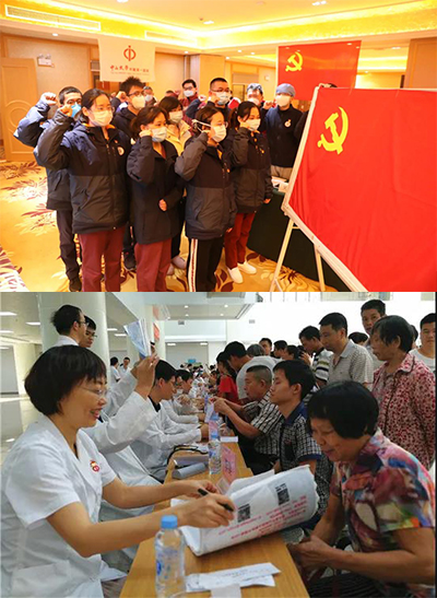 附属第一医院驰援武汉医疗队14名火线入党的新党员在武汉协和医院和汉口医院宣誓入党(上图)