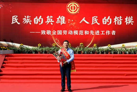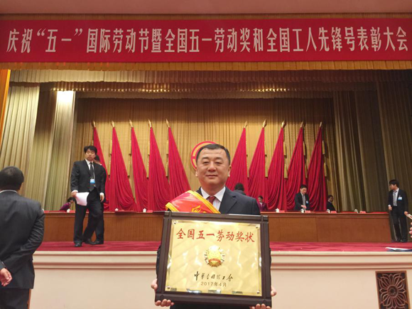 武少新书记代表中心领取“全国五一劳动奖状”(来源:肿瘤防治中心)