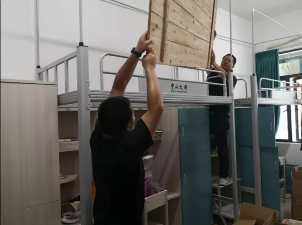 在搬迁中,老师们积极参与,关心、协助有需要的学生;同学们互相帮忙,男生主动帮助女生搬运洗衣机等大件行李下楼。到达校区后,学院领导、老师们多次走访学生宿舍,关心询问入住情况,协助解决问题。