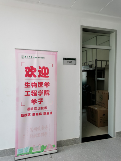 深圳校区学生宿舍区欢迎牌(图片来源:生物医学工程学院)