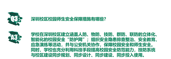 学校将持续深化深圳校区安保体系建设,不断提高深圳校区的安全指数,大力推进保卫工作,有效落实安保措施,守护师生和学校的平安!