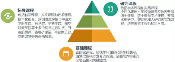 深圳附属学校围绕核心素养,构建现代课程谱系,开足开齐国家基础课程,还开设高选择性的拓展课程和个性化研究课程,目前开发的拓展课程有30余门,研究课程40余门、实践课程30余门,涵盖科学、人文、艺术和体育等领域。