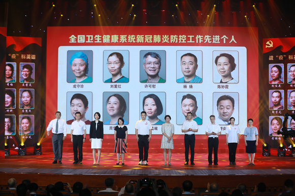 活动现场向我校获“全国卫生健康系统新冠肺炎疫情防控工作先进个人”称号的10位同志致敬(来源:党委宣传部)