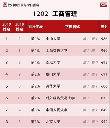 2019软科中国最好学科排名中,我校工商管理学科位列第一(来源:管理学院)