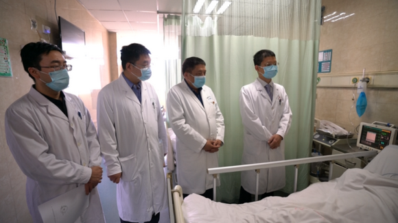 程华带领科室成员查房,查看术后患者(来源:附属第五医院)