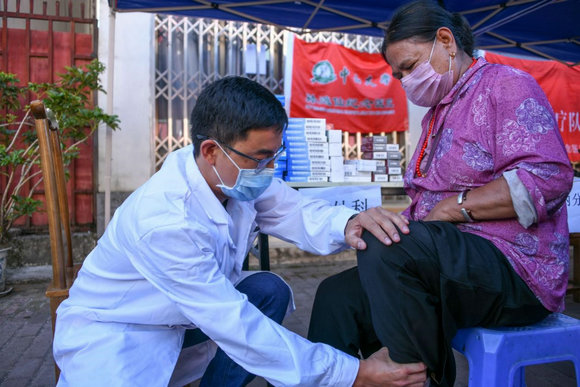 骨外科李玉希主治医师在义诊现场为老奶奶提供诊疗(来源:孙逸仙纪念医院)