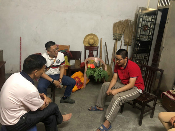 刘嘉(左一)走访调研贫困户(来源:校工会)