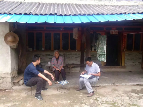 麦伟立(左一)走访农户,了解秋茶、核桃情况(来源:校工会)