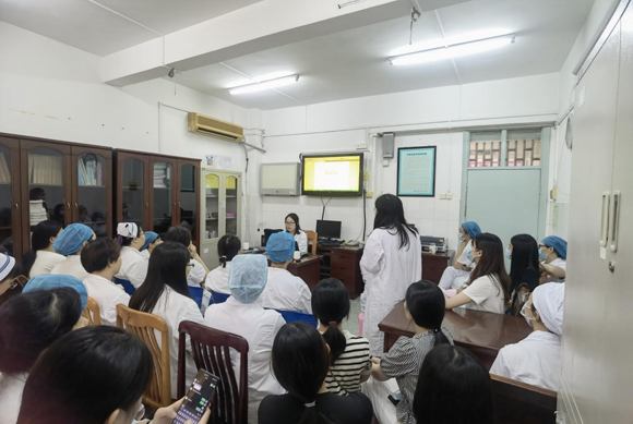 侯红瑛、滕奔琦参加潮州市中心医院产科早交班(来源:附属第三医院)