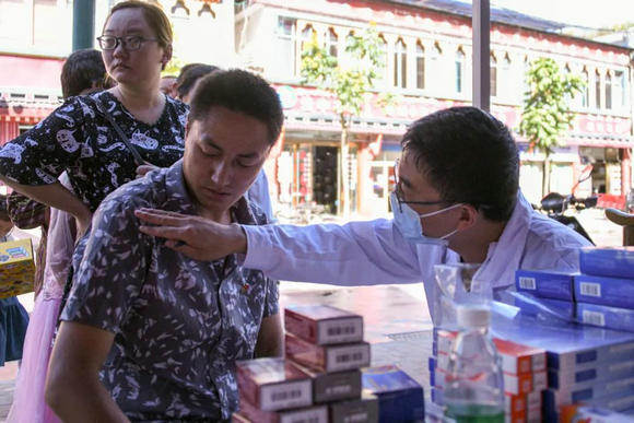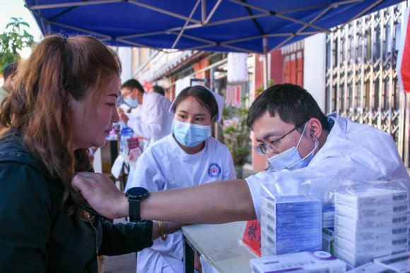 姚和瑞副院长在为群众检查身体(来源:党委宣传部)