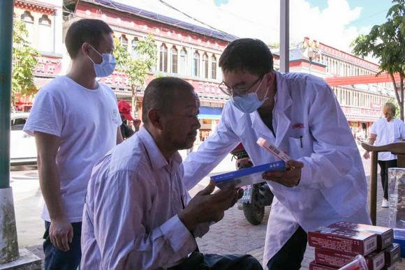 义诊医生为大家免费送药并叮嘱日常注意事项(来源:党委宣传部)