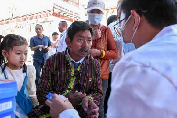 当地群众扎西顿珠在咨询病情(来源:党委宣传部)