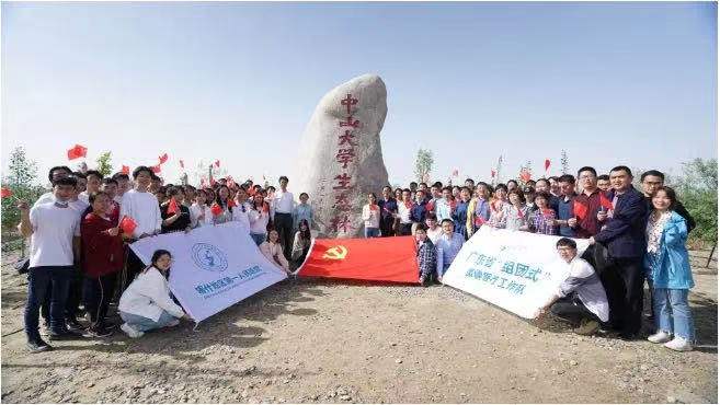 30日下午,邹小广书记一行前往麦盖提县百万亩防风固沙生态林开展主题党日活动,亲身感受这个全国唯一 一个嵌入沙漠的县如何开展治沙的伟大工程。在展馆中,研究生们被图片展现出来的麦盖提县人民治沙决心和壮举所感动,被治沙宣传片中彰显的麦盖提县人民“敢叫日月换新颜”的勇气,以及敢于与恶劣自然环境斗争的精神所震撼。来到“中大造林、情系边疆”展板前,邹小广书记、林天歆院长讲述了中大与边疆的故事。2017年,学校党委书记陈春声和校长罗俊先后来到麦盖提县考察调研,并提出拨款3000万元建设1万亩的best365中国官方网站生态林的提议。据统计,目前已栽植杨树、沙枣、梭梭等各类苗木360万株,为当地治沙事业作出了巨大的贡献。研究生们认真聆听,也更加坚定了援疆的理想信念和初心使命。