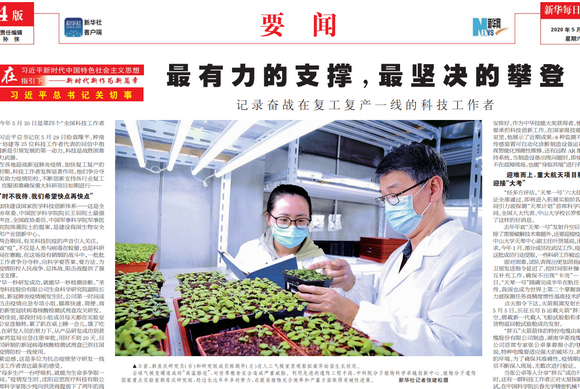 新闻网讯 5月30日,在《新华每日电讯》第4版题为《最有力的支撑,最坚决的攀登——记录奋战在复工复产一线的科技工作者》的通讯中,新华社记者采访了全国人大代表、中国科学院院士、我校校长罗俊。