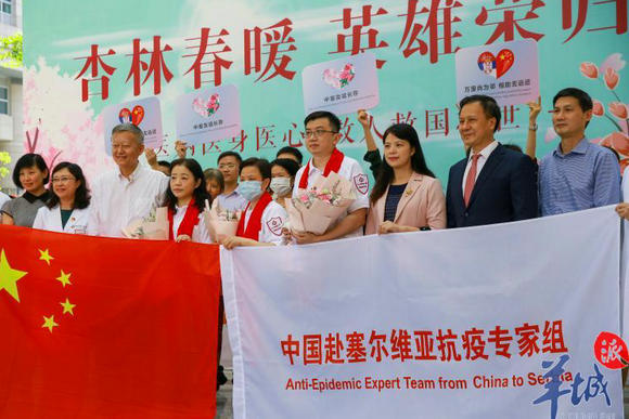 5月2日下午,中山一院再派出3名专家接力援助塞尔维亚并举行欢送仪式 羊城晚报记者 宋金峪摄
